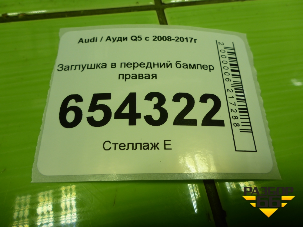 Заглушка в передний бампер правая (8R0807246) для Audi Q5 c 2008-2017г (Ку 5) в Перми