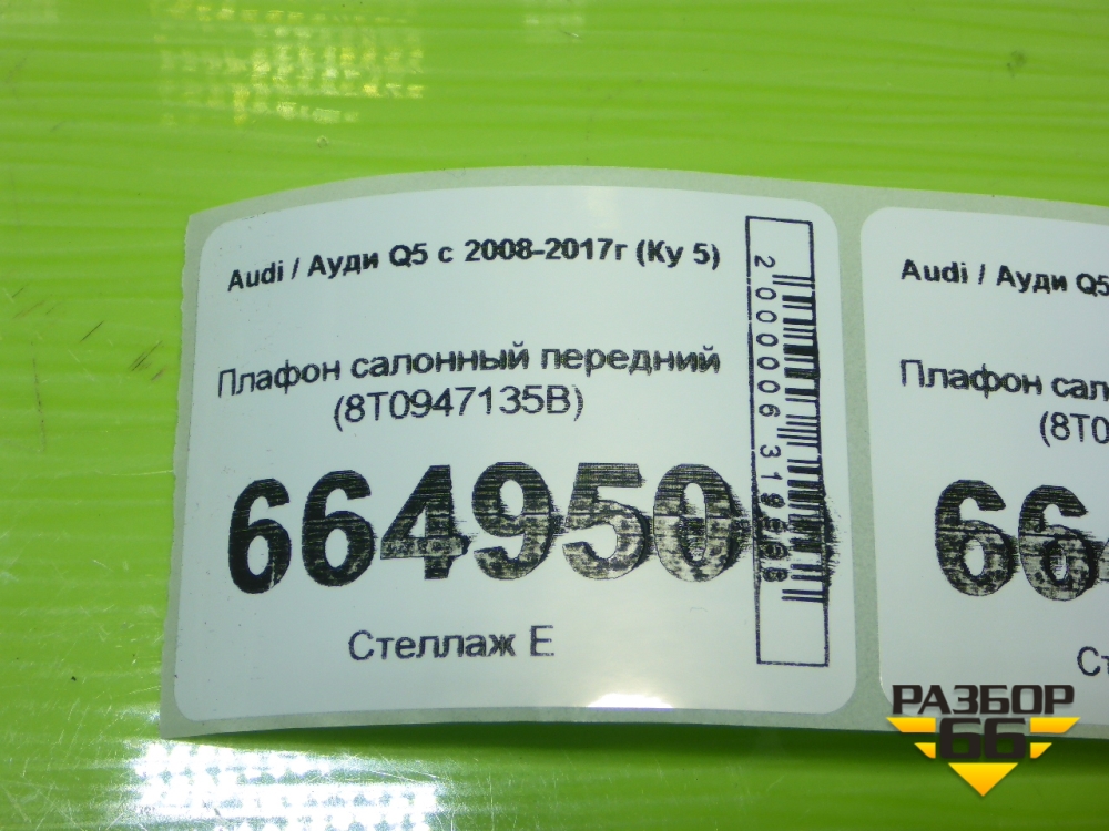 Плафон салонный передний (8T0947135B) для Audi Q5 c 2008-2017г (Ку 5) в Перми