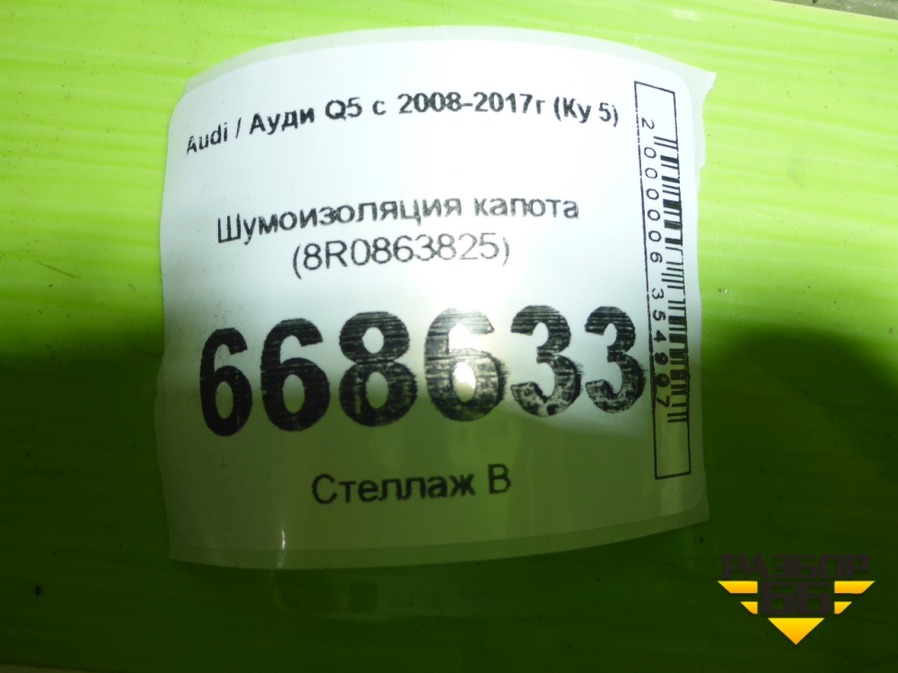 Шумоизоляция капота (8R0863825) для Audi Q5 c 2008-2017г (Ку 5) в Перми