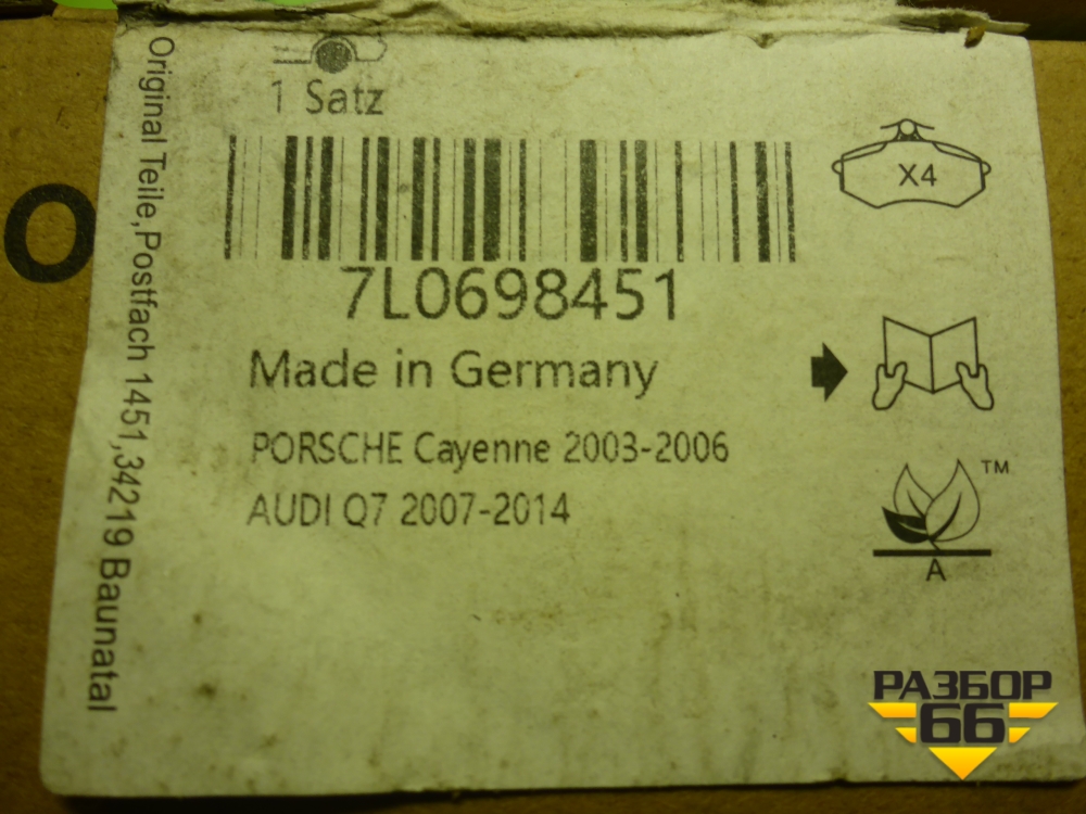 Колодки тормозные задние (новые) (7L0698451) для Audi Q7 c 2005-2015г (Ку 7) в Перми