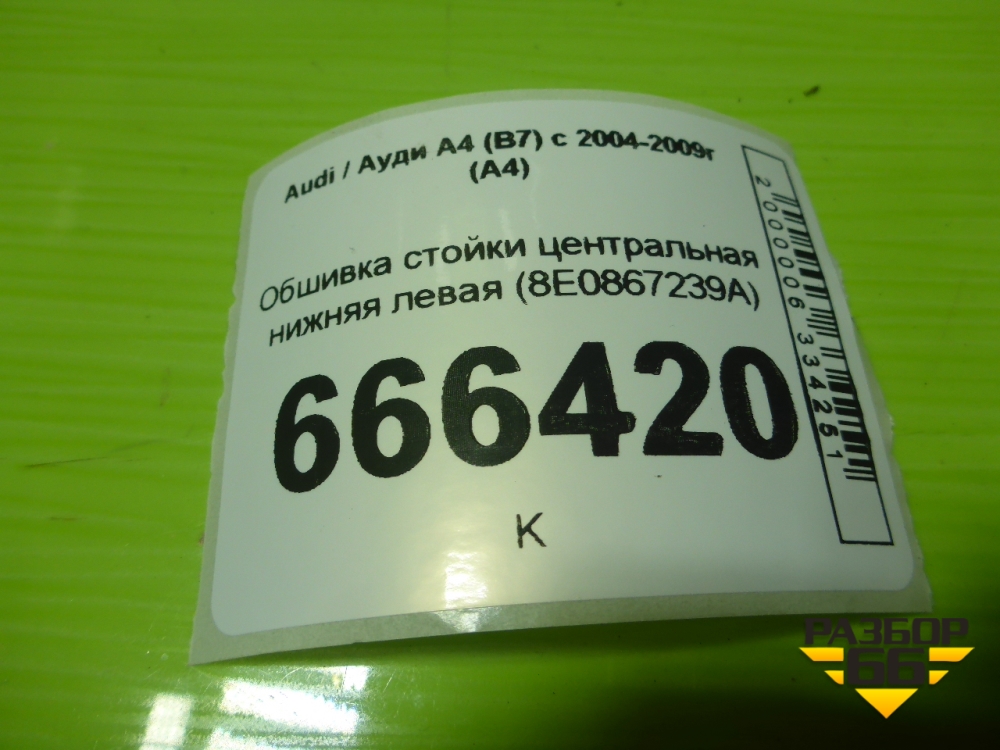 Обшивка стойки центральная нижняя левая (8E0867239A) для Audi A4 (В7) с 2004-2009г (А4) в Перми