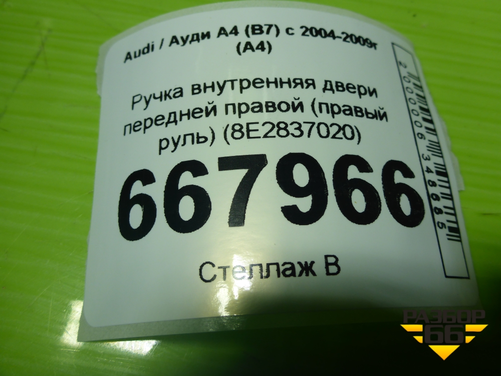 Ручка внутренняя двери передней правой (правый руль) (8E2837020) для Audi A4 (В7) с 2004-2009г (А4) в Перми