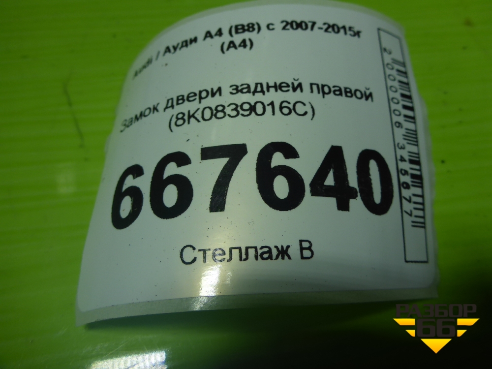 Замок двери задней правой (8K0839016C) для Audi A4 (В8) с 2007-2015г (А4) в Перми