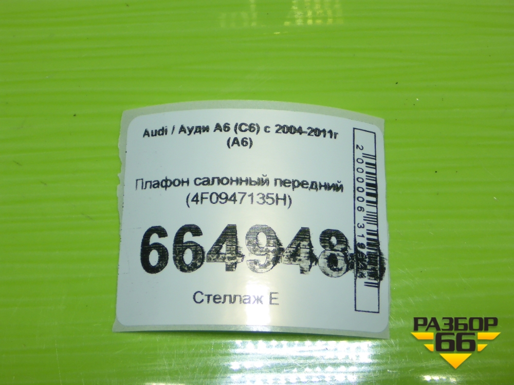 Плафон салонный передний (4F0947135H) для Audi A6 (C6) с 2004-2011г (А6) в Перми