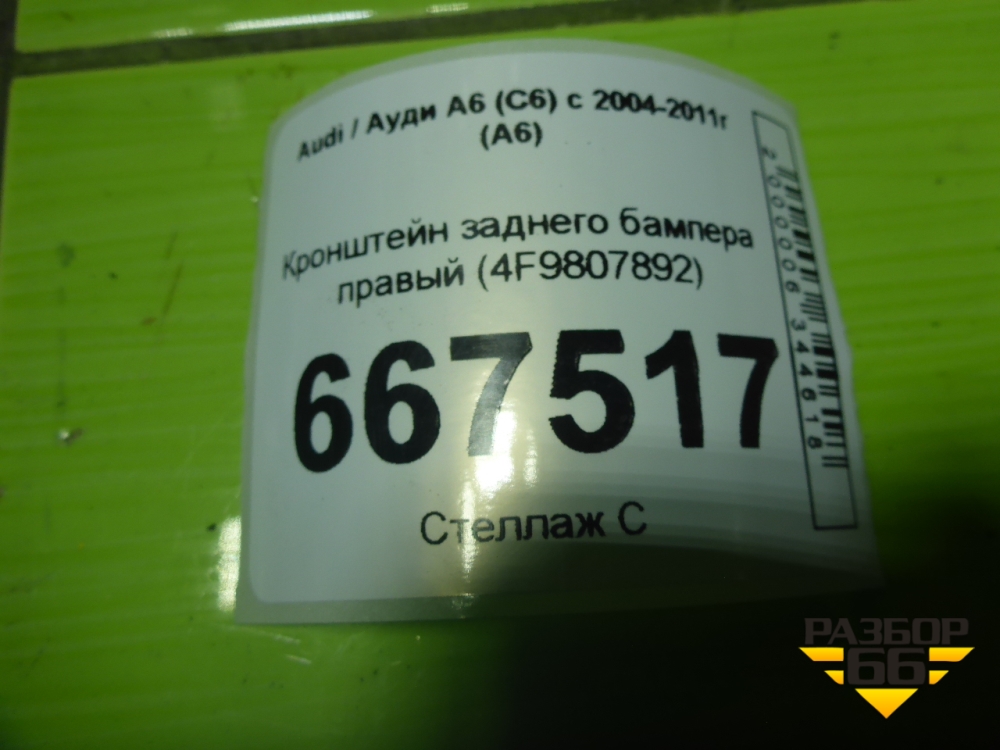 Кронштейн заднего бампера правый (4F9807892) для Audi A6 (C6) с 2004-2011г (А6) в Перми