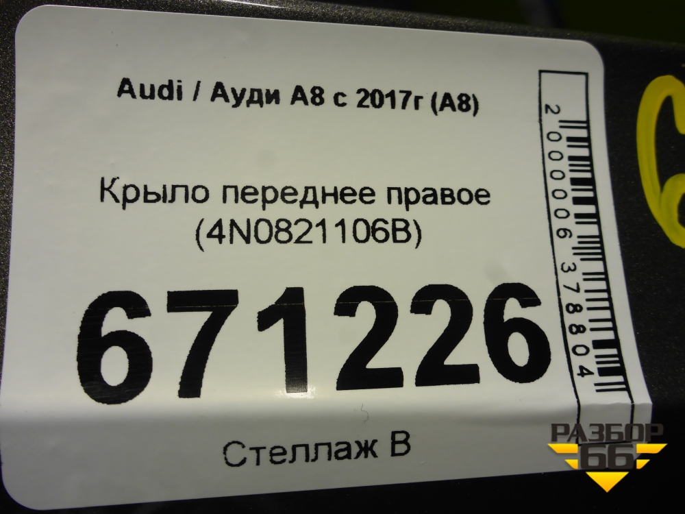 Крыло переднее правое (4N0821106B) для Audi A8 с 2017г (А8) в Перми