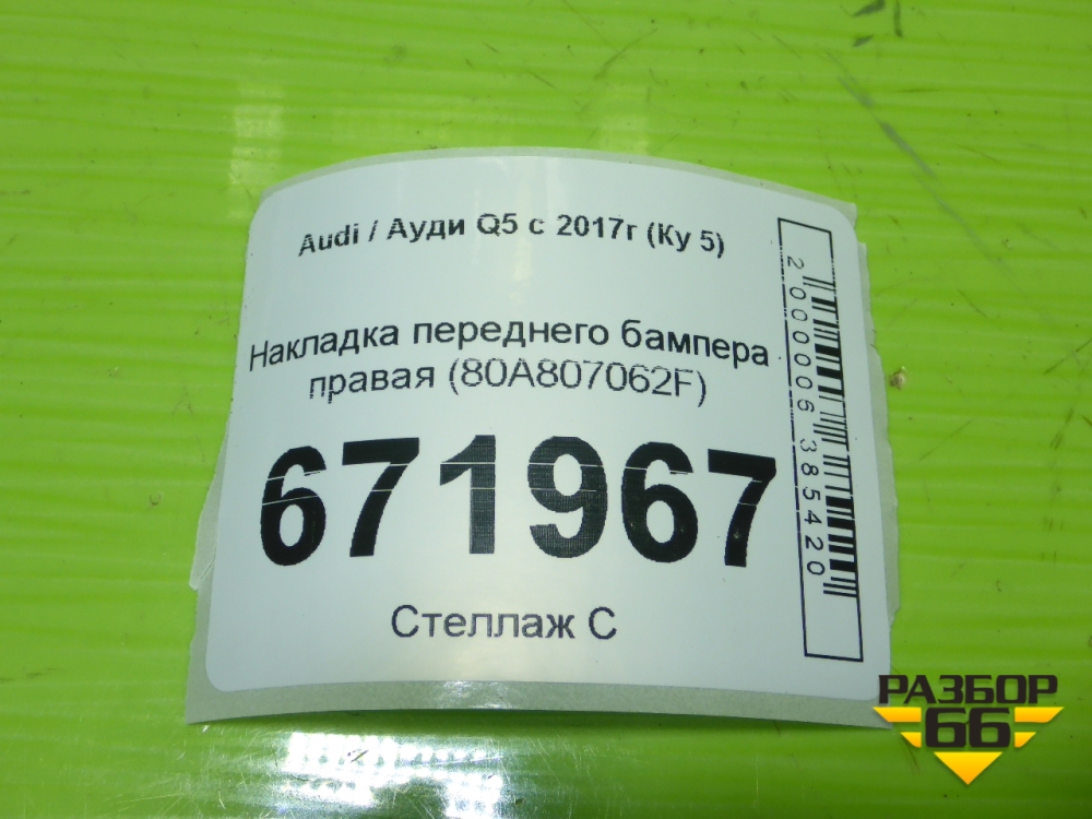 Накладка переднего бампера правая (80A807062F) для Audi Q5 с 2017г (Ку 5) в Перми