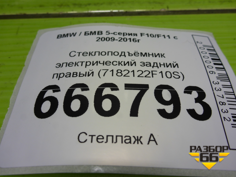 Стеклоподъёмник электрический задний правый (7182122F10S) для BMW 5-серия F10/F11 с 2009-2016г в Перми