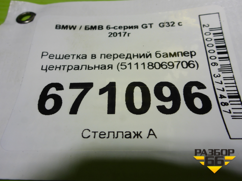 Решетка в передний бампер центральная (51118069706) для BMW 6-серия GT G32 с 2017г в Перми