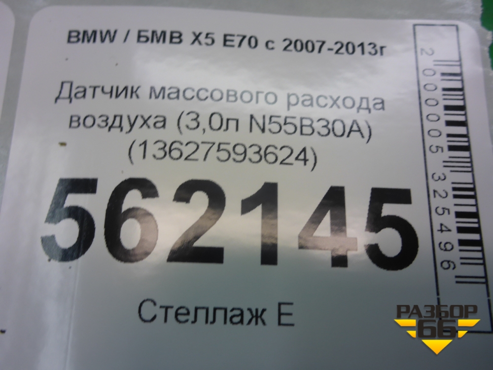 Датчик массового расхода воздуха (3,0л N55B30A) (13627593624) для BMW X5 E70 с 2007-2013г (Х5 Е70) в Перми