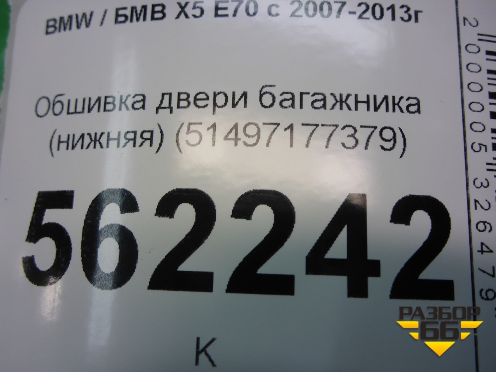 Обшивка двери багажника (нижняя) (51497177379) для BMW X5 E70 с 2007-2013г (Х5 Е70) в Перми