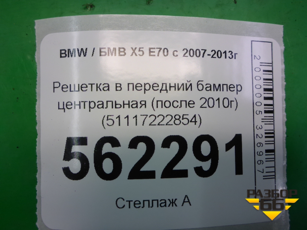 Решетка в передний бампер центральная (после 2010г) (51117222854) для BMW X5 E70 с 2007-2013г (Х5 Е70) в Перми