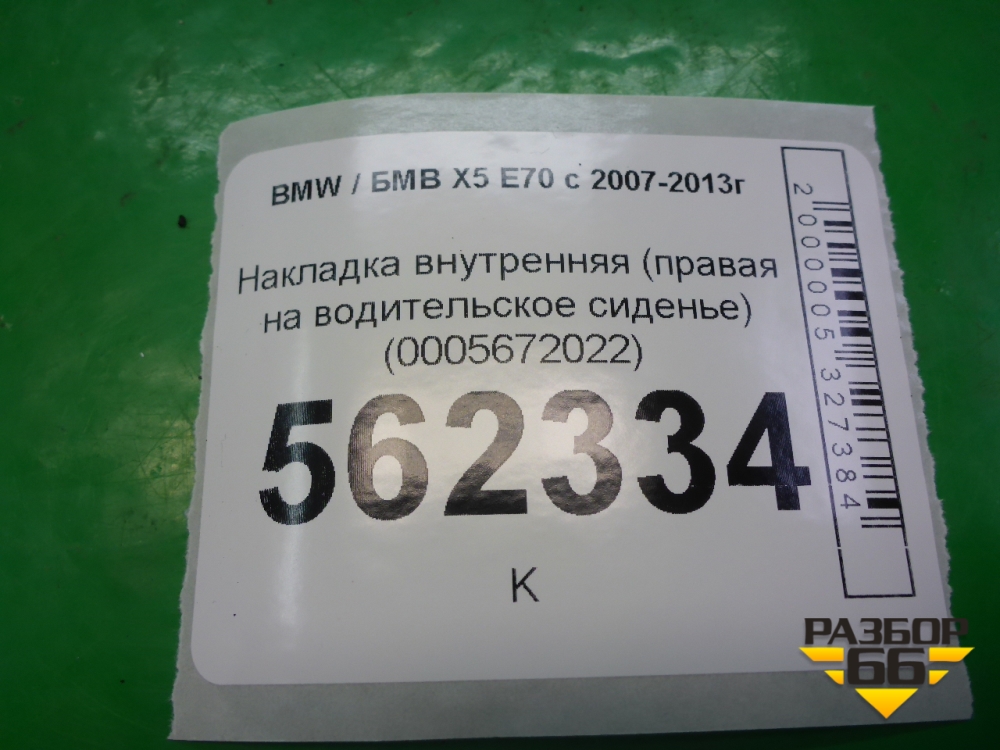 Накладка внутренняя (правая на водительское сиденье) (0005672022) для BMW X5 E70 с 2007-2013г (Х5 Е70) в Перми
