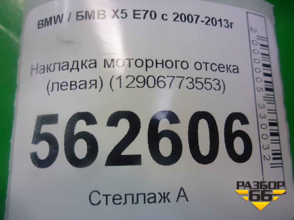 Накладка моторного отсека (левая) (12906773553) для BMW X5 E70 с 2007-2013г (Х5 Е70) в Перми