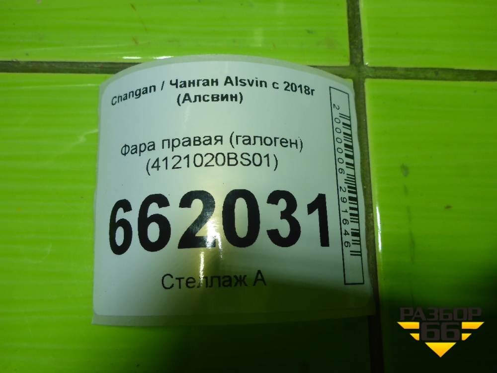 Фара правая (галоген) (4121020BS01) для Changan Alsvin с 2018г (Алсвин) в Перми