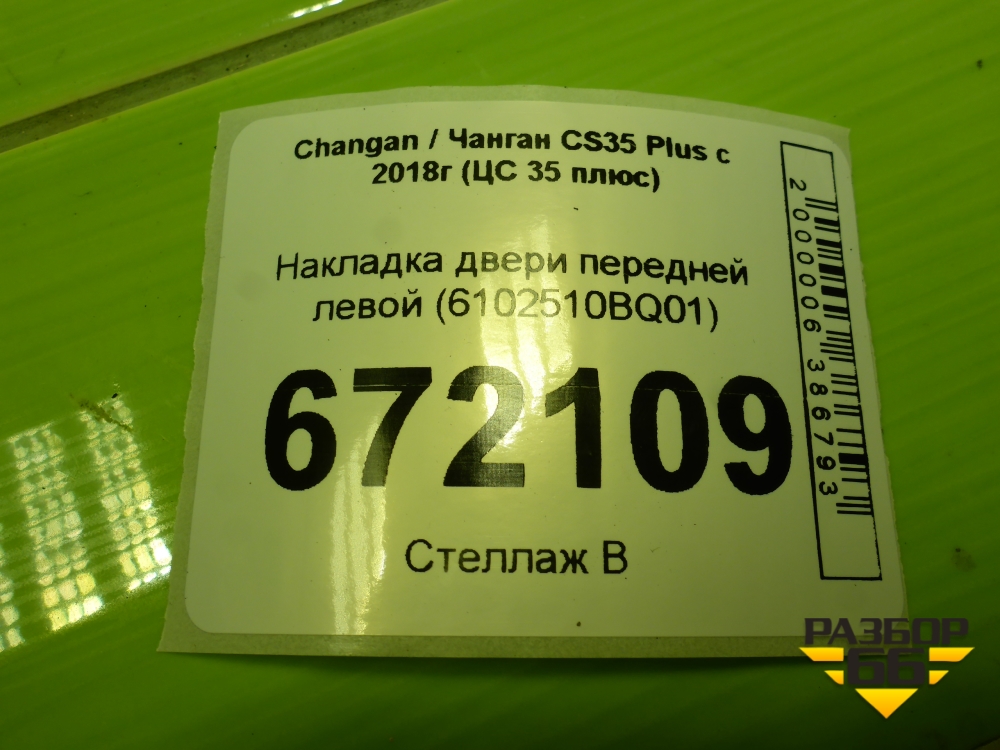 Накладка двери передней левой (6102510BQ01) для Changan CS35 Plus с 2018г (ЦС 35 плюс) в Перми