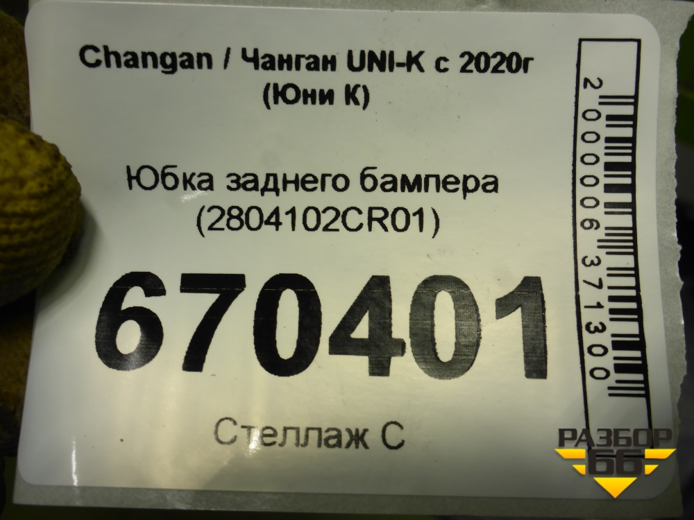 Юбка заднего бампера (2804102CR01) для Changan UNI-K с 2020г (Юни К) в Перми