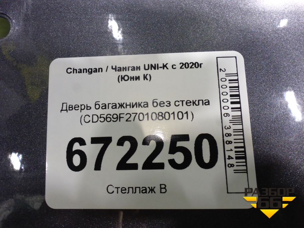 Дверь багажника без стекла (CD569F2701080101) для Changan UNI-K с 2020г (Юни К) в Перми