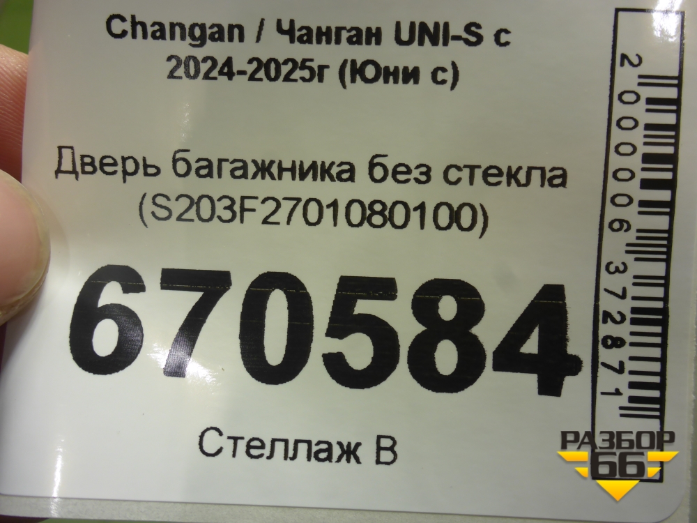 Дверь багажника без стекла (S203F2701080100) для Changan UNI-S с 2024-2025г (Юни с) в Перми