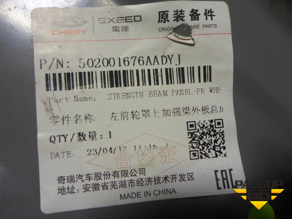 Кузовной элемент (панель переднего левого лонжерона) (502001676AADYJ) для Chery Arrizo 8 с 2022г (Арризо 8) в Перми