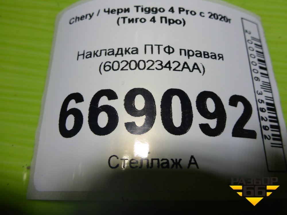 Накладка ПТФ правая (602002342AA) для Chery Tiggo 4 Pro с 2020-2025г (Тиго 4 Про) в Перми