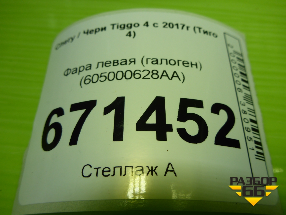 Фара левая (галоген) (605000628AA) для Chery Tiggo 4 с 2017-2025г (Тиго 4) в Перми