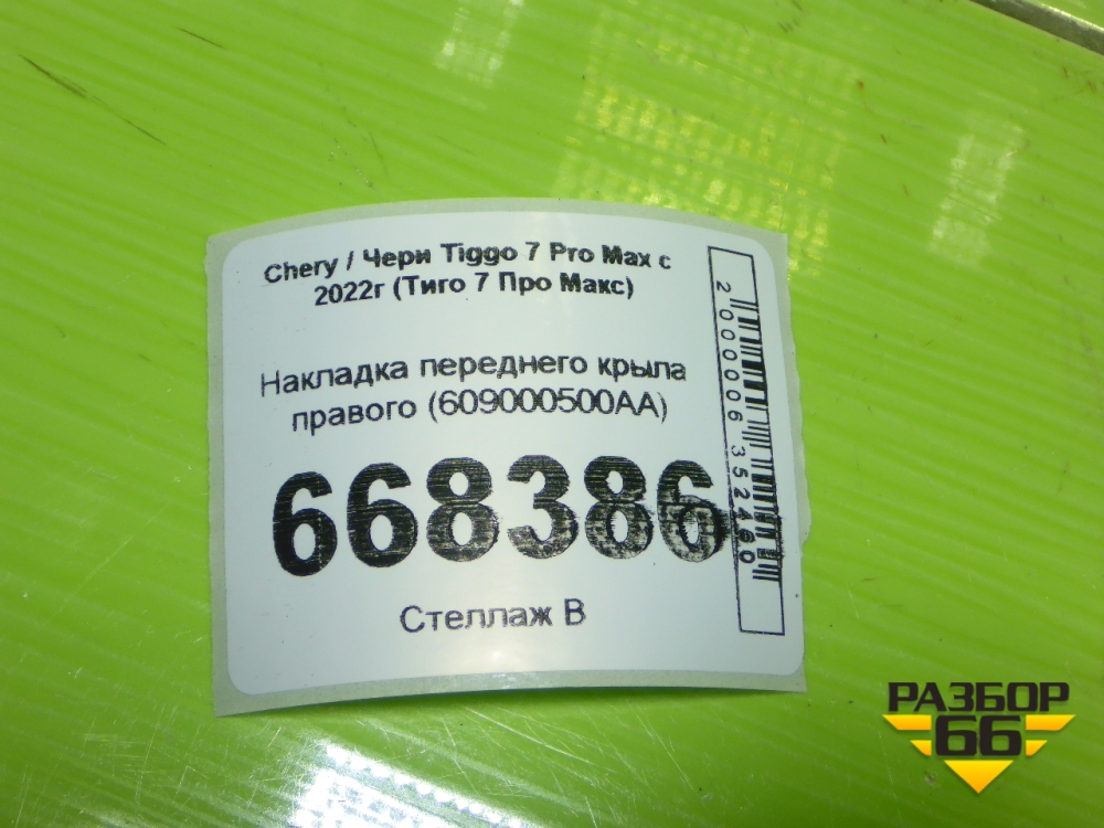 Накладка переднего крыла правого (609000500AA) для Chery Tiggo 7 Pro Max с 2022г (Тиго 7 Про Макс) в Перми