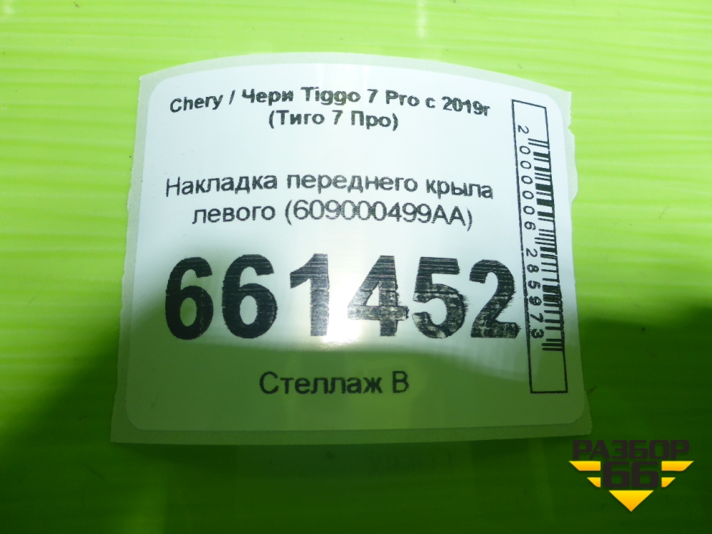 Накладка переднего крыла левого (609000499AA) для Chery Tiggo 7 Pro с 2019г (Тиго 7 Про) в Перми