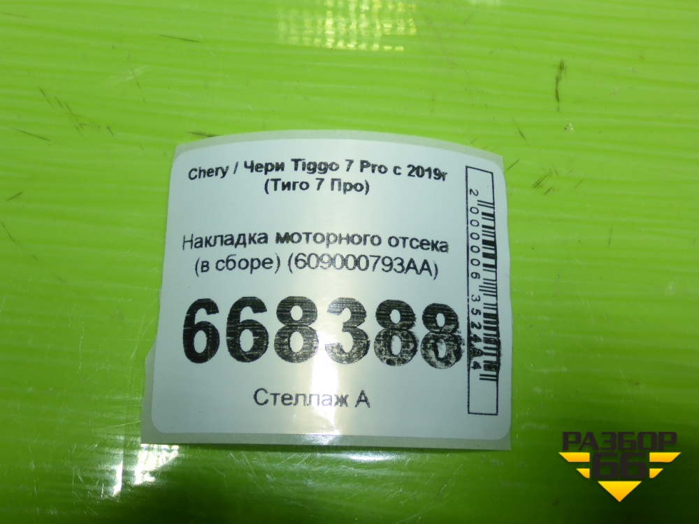 Накладка моторного отсека (в сборе) (609000793AA) для Chery Tiggo 7 Pro с 2019г (Тиго 7 Про) в Перми