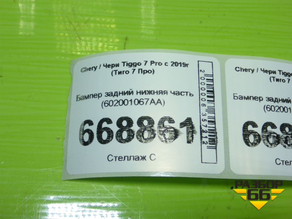Бампер задний нижняя часть (602001067AA) для Chery Tiggo 7 Pro с 2019г (Тиго 7 Про) в Перми
