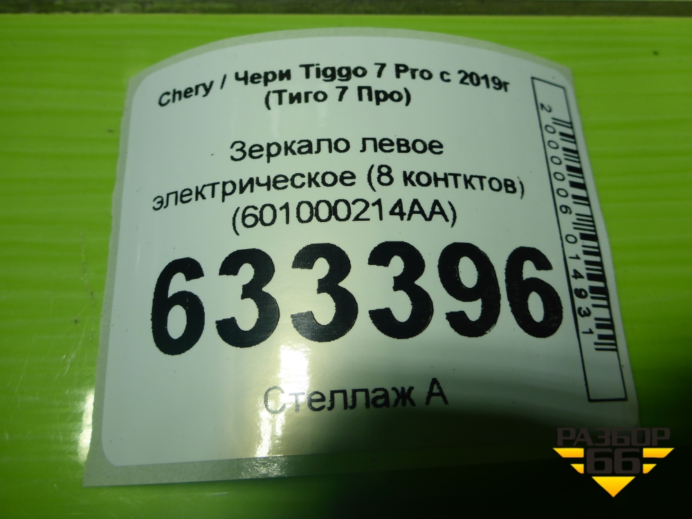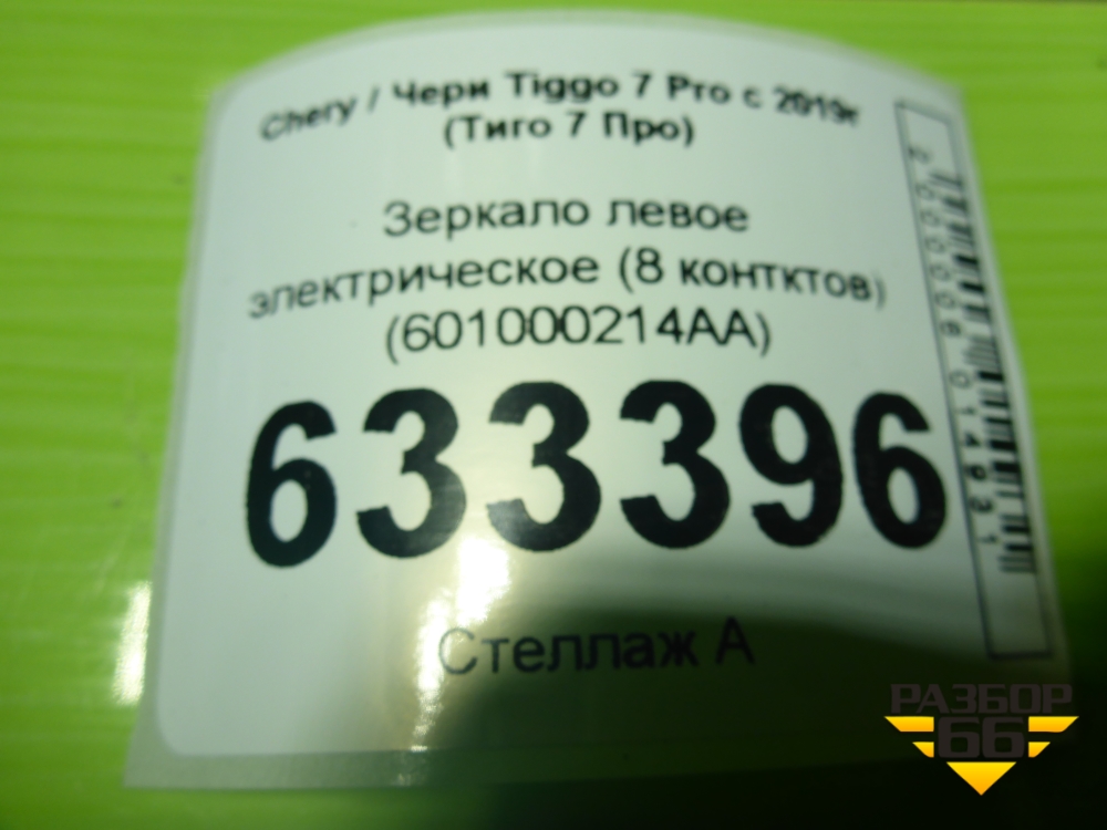 Зеркало левое электрическое (8 контктов) (601000214AA) для Chery Tiggo 7 Pro с 2019г (Тиго 7 Про) в Перми