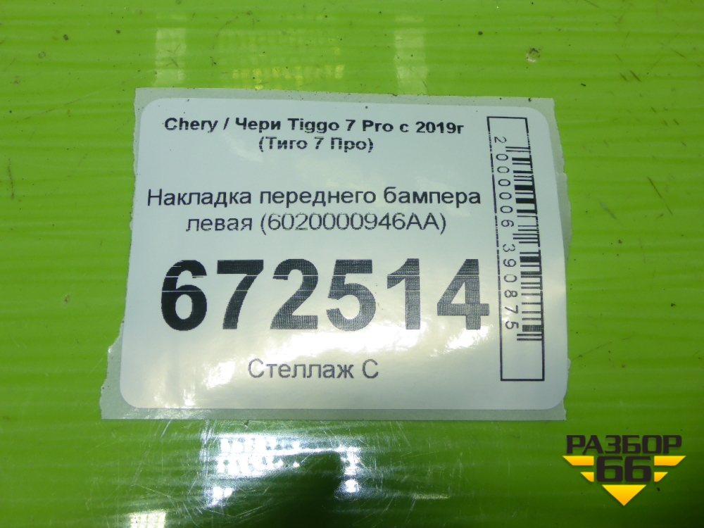 Накладка переднего бампера левая (6020000946AA) для Chery Tiggo 7 Pro с 2019г (Тиго 7 Про) в Перми