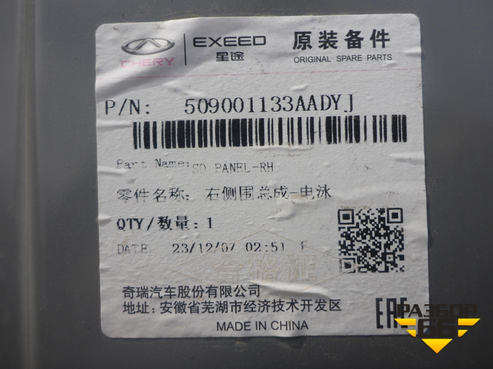 Боковина кузова правая (новая) (509001133AADYJ) для Chery Tiggo 7 Pro с 2019г (Тиго 7 Про) в Перми