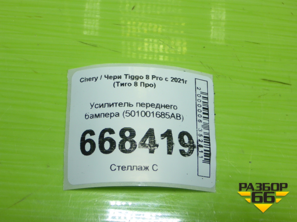 Усилитель переднего бампера (501001685AB) для Chery Tiggo 8 Pro с 2021г (Тиго 8 Про) в Перми
