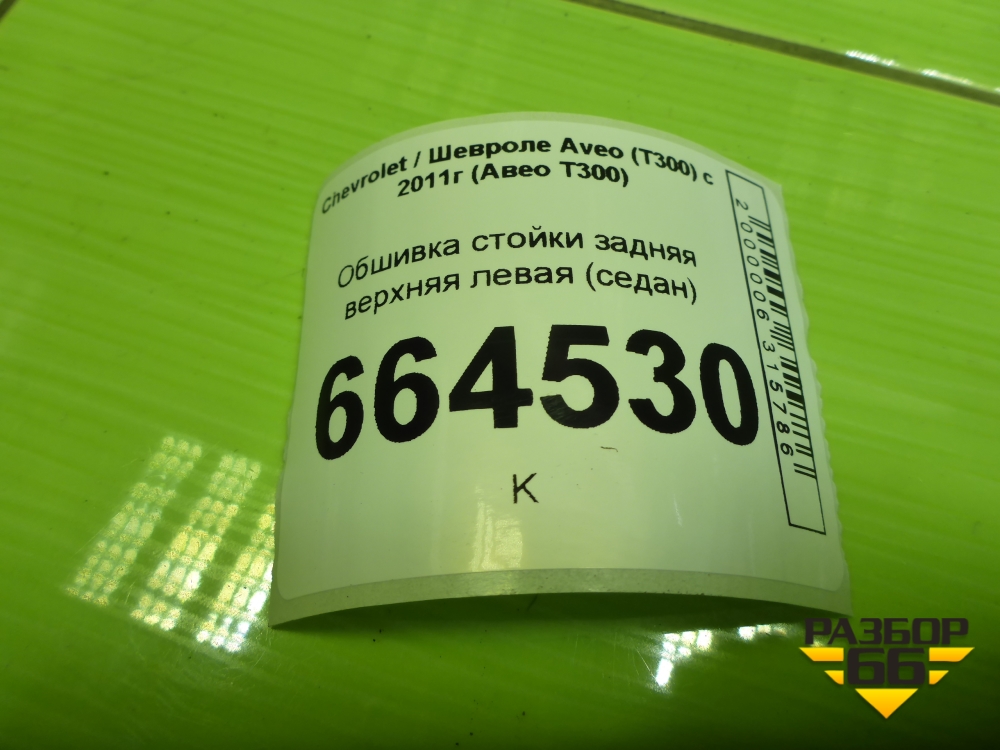 Обшивка стойки задняя верхняя левая (седан) (95474658) для Chevrolet Aveo (Т300) с 2011г (Авео Т300) в Перми