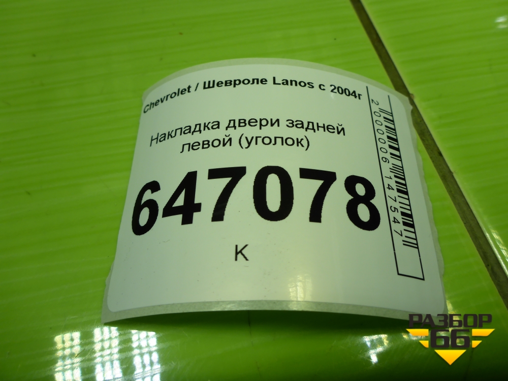 Накладка двери задней левой (уголок) (96304738) для Chevrolet Lanos с 2004г (Ланос) в Перми