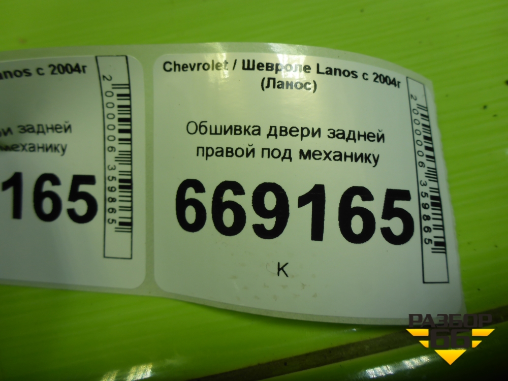 Обшивка двери задней правой под механику (96275567) для Chevrolet Lanos с 2004г (Ланос) в Перми