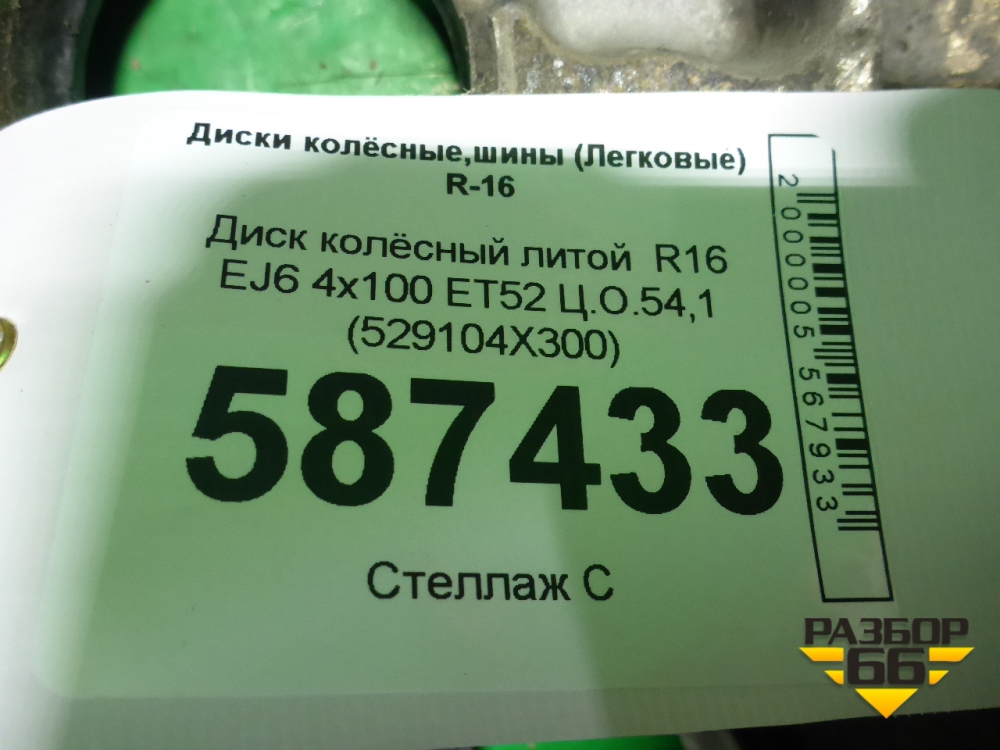 Диск колёсный литой R16 EJ6 4х100 ET52 Ц.О.54,1 (529104X300) в Перми