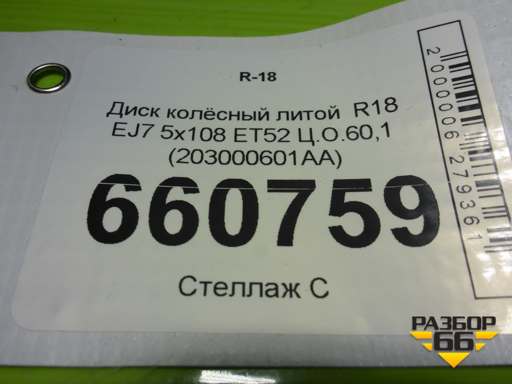 Диск колёсный литой R18 EJ7 5x108 ET52 Ц.О.60,1 (203000601AA) в Перми