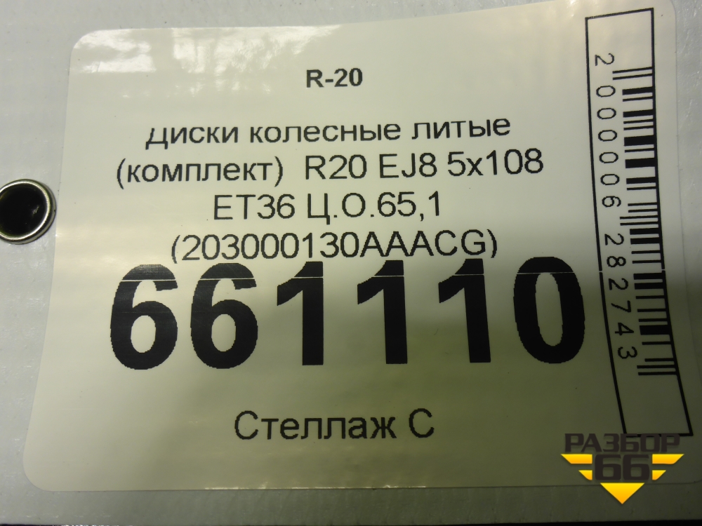 Диски колёсные литые (комплект) R20 EJ8 5x108 ET36 Ц.О.65,1 (203000130AAACG) в Перми