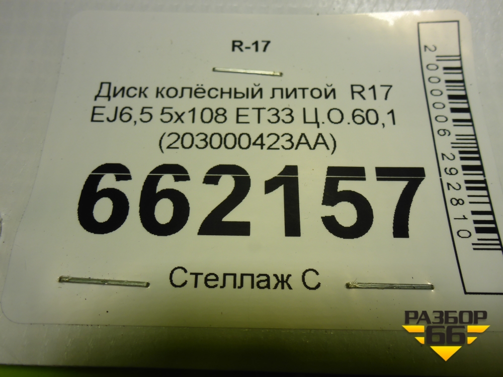 Диск колёсный литой R17 EJ6,5 5x108 ET33 Ц.О.60,1 (203000423AA) в Перми