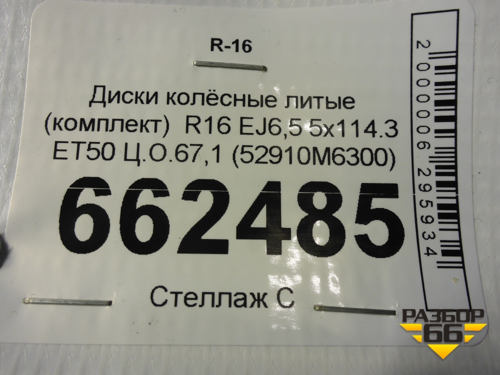 Диски колёсные литые (комплект) R16 EJ6,5 5x114.3 ET50 Ц.О.67,1 (52910M6300) в Перми