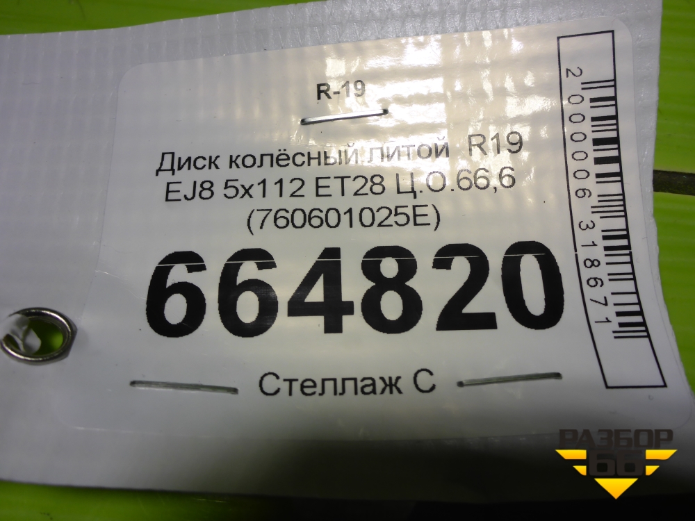 Диск колёсный литой R19 EJ8 5x112 ET28 Ц.О.66,6 (760601025E) в Перми