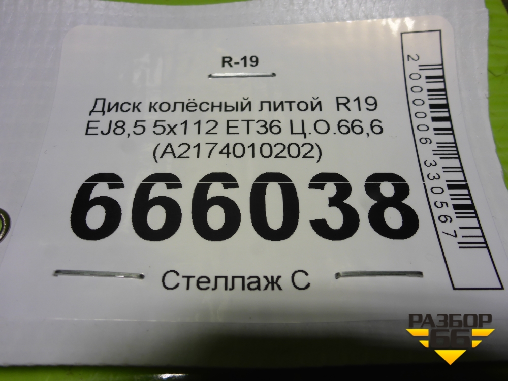 Диск колёсный литой R19 EJ8,5 5x112 ET36 Ц.О.66,6 (A2174010202) в Перми