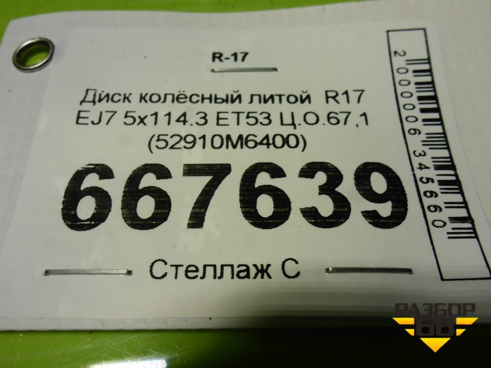 Диск колёсный литой R17 EJ7 5x114.3 ET53 Ц.О.67,1 (52910M6400) в Перми