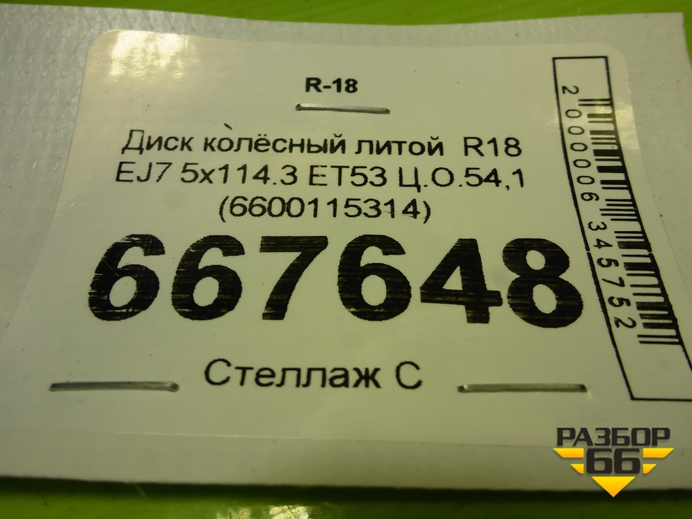 Диск колёсный литой R18 EJ7 5x114.3 ET53 Ц.О.54,1 (6600115314) в Перми