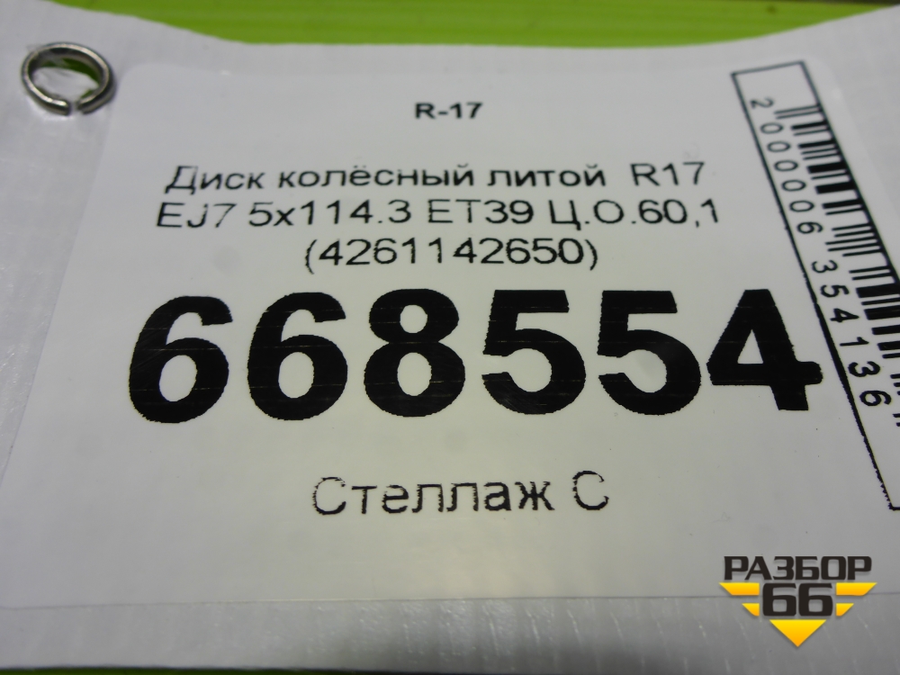 Диск колёсный литой R17 EJ7 5x114.3 ET39 Ц.О.60,1 (4261142650) в Перми