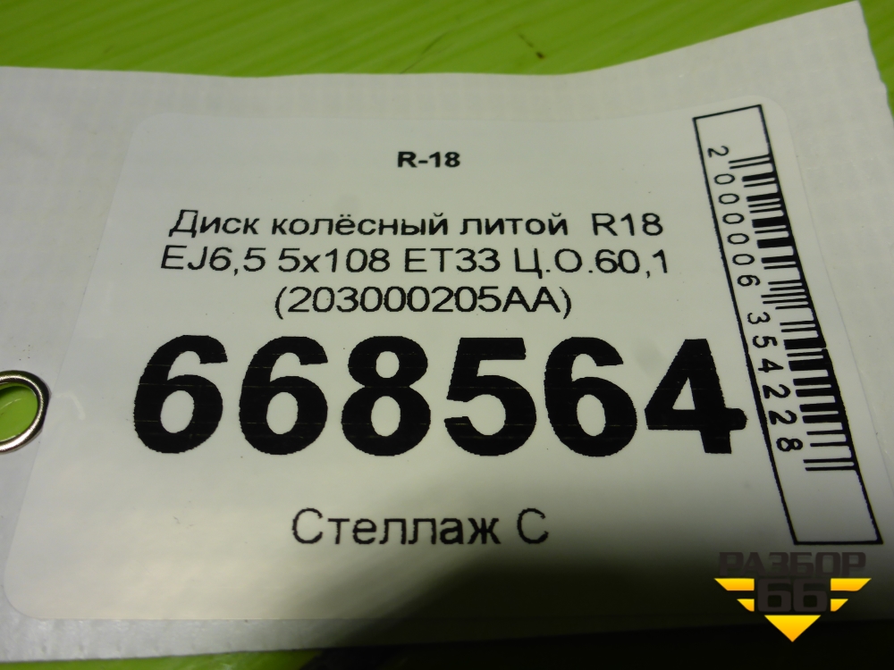 Диск колёсный литой R18 EJ6,5 5x108 ET33 Ц.О.60,1 (203000205AA) в Перми