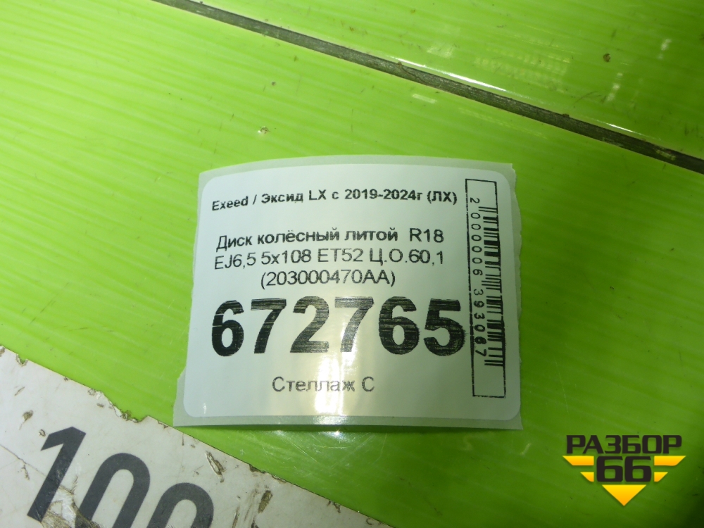Диск колёсный литой R18 EJ6,5 5x108 ET52 Ц.О.60,1 (203000470AA) в Перми
