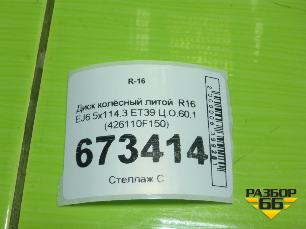 Диск колёсный литой R16 EJ6 5x114.3 ET39 Ц.О.60,1 (426110F150) в Перми